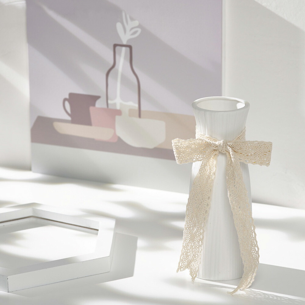 花瓶 おしゃれ 韓国スタイル ホワイト 北欧デザイン リボン付き フラワーベース セラミック 陶器 陶磁器 一輪挿し かわいい モダン 白 インテリア