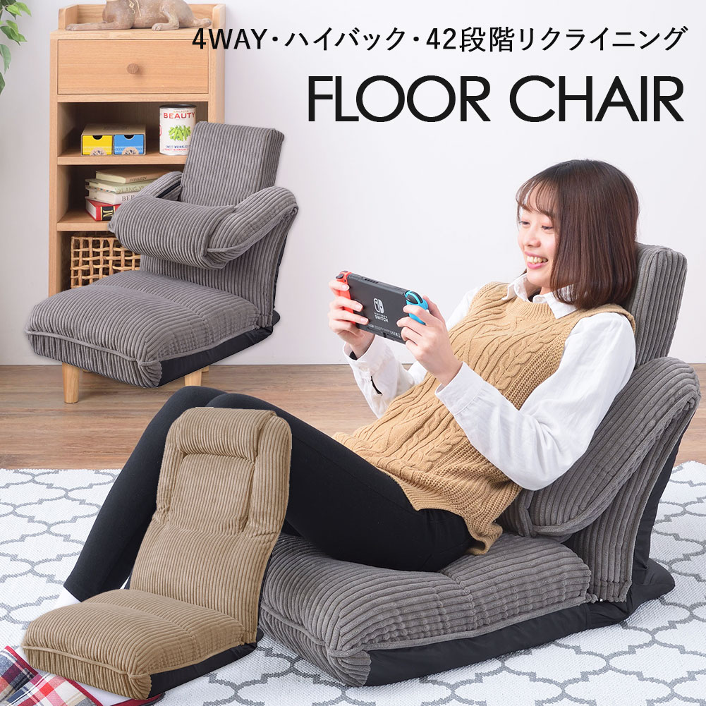 座椅子 ハイバック 4WAY フロアチェア リクライニング ローチェア フロアチェア 腰痛 テレワーク ごろ寝 一人用 一人掛け ソファー 角度調節 パーソナルチェア