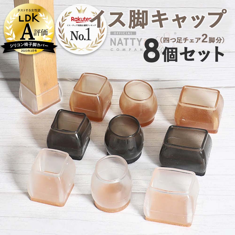 [椅子脚カバー シリコン 雑誌掲載品 Natty&Co公式 イス脚カバー 足 カバー 8個セット 2脚分 キャップ 丸型 丸脚 角脚 正方形 長方形 おしゃれ かわいい 脱げにくい 脚キャップ チェアソックス 茶 黒 クリア 北欧 透明 傷防止 騒音防止 床保護 床キズ 防止 ギギー 解消 ポイント利用 爆買]