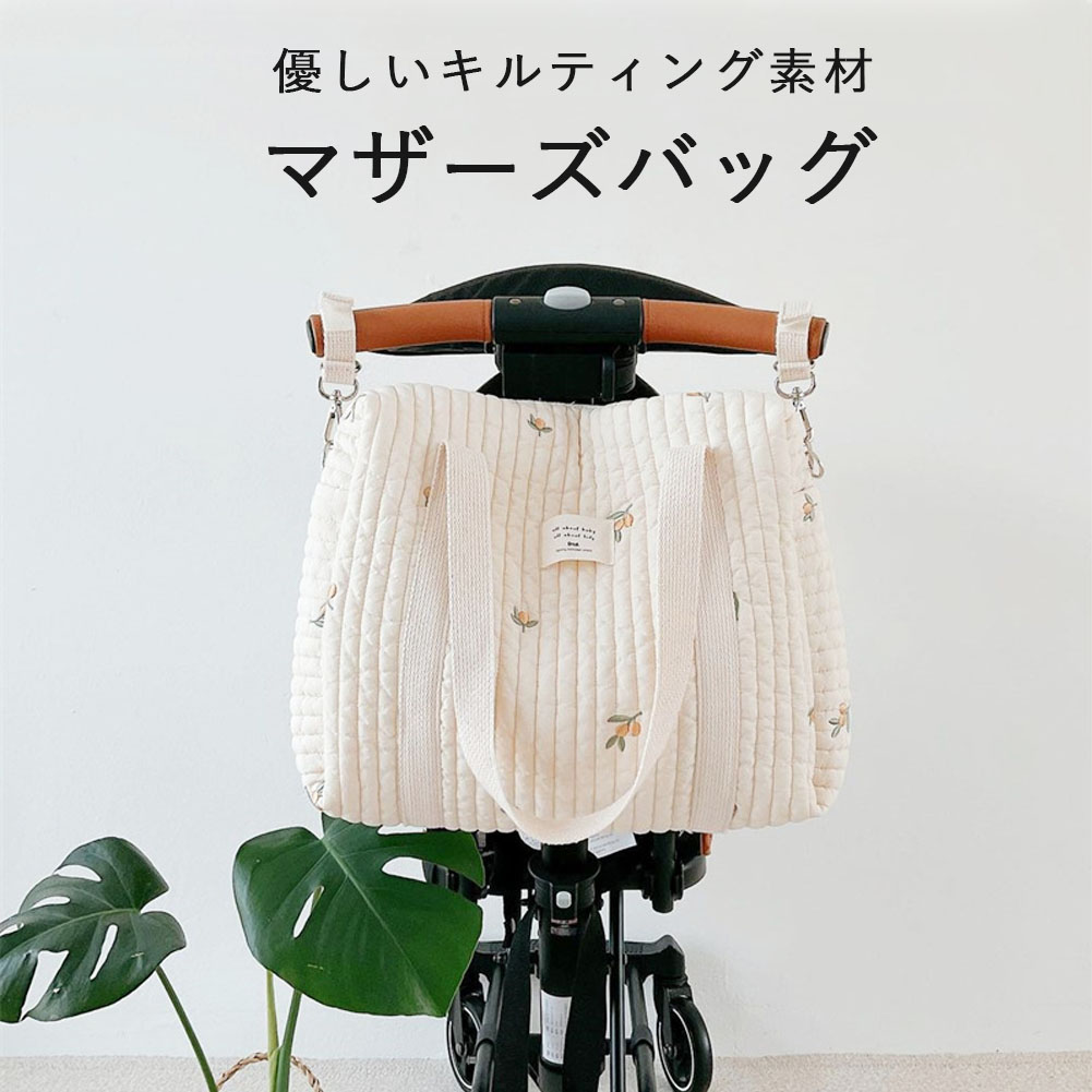 | 優しいナチュラルなキルティング生地に小ぶりな刺繍デザインのマザーズバッグ |