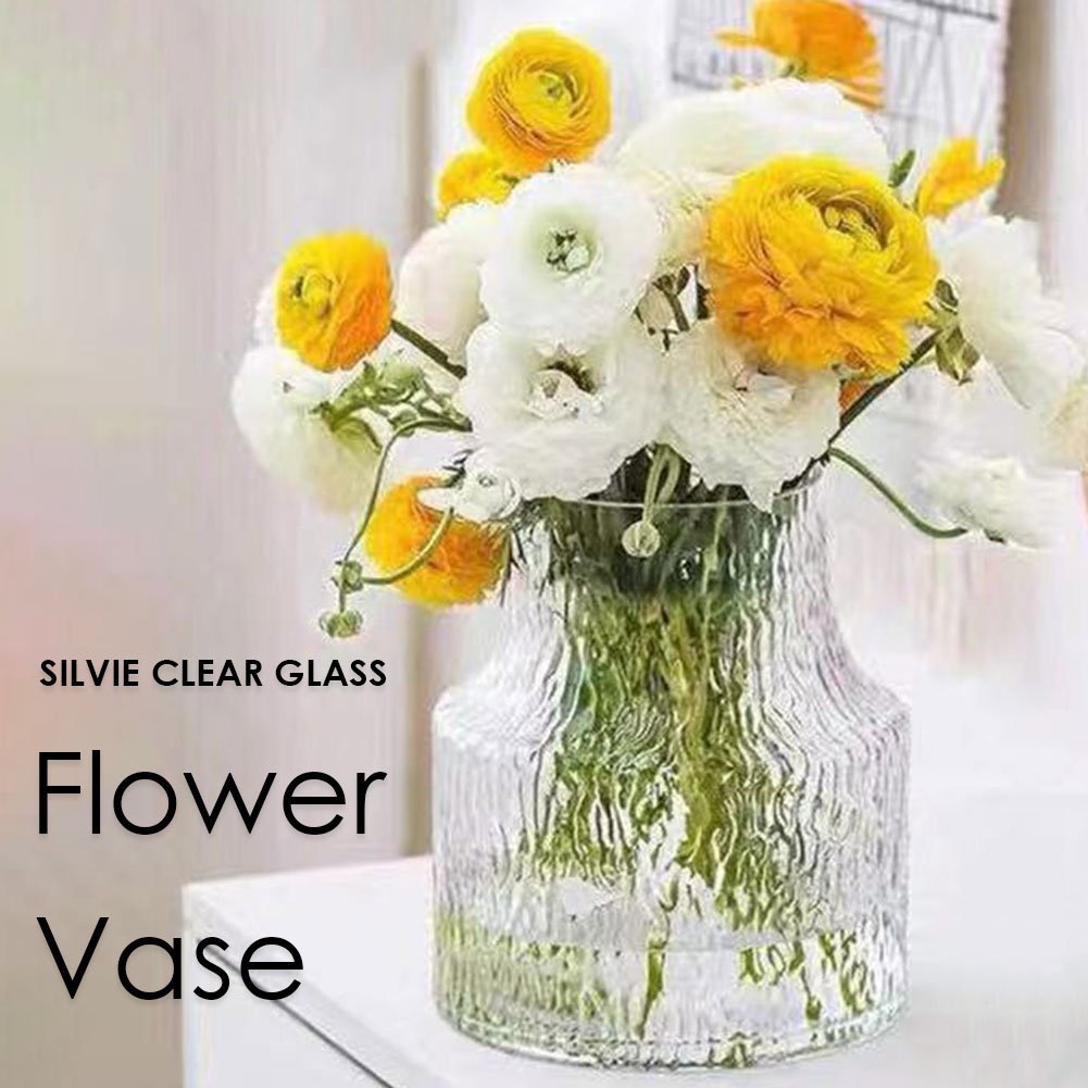 | 光を差込むガラス製ですが、シルビークリア柄は光を透過しすぎない特徴もあり、柔らかな光を通すことで内部の茎や水が見えすぎず、落ち着いた雰囲気を演出します。また、水の濁りや茎の汚れも目立ちにくいため、美しい見た目を保ちやすいデザインです。 |