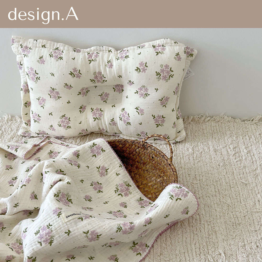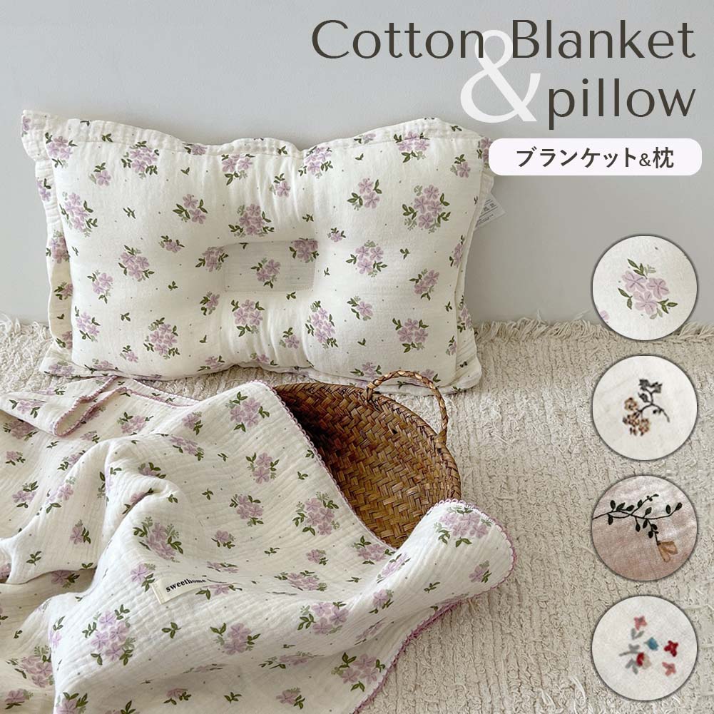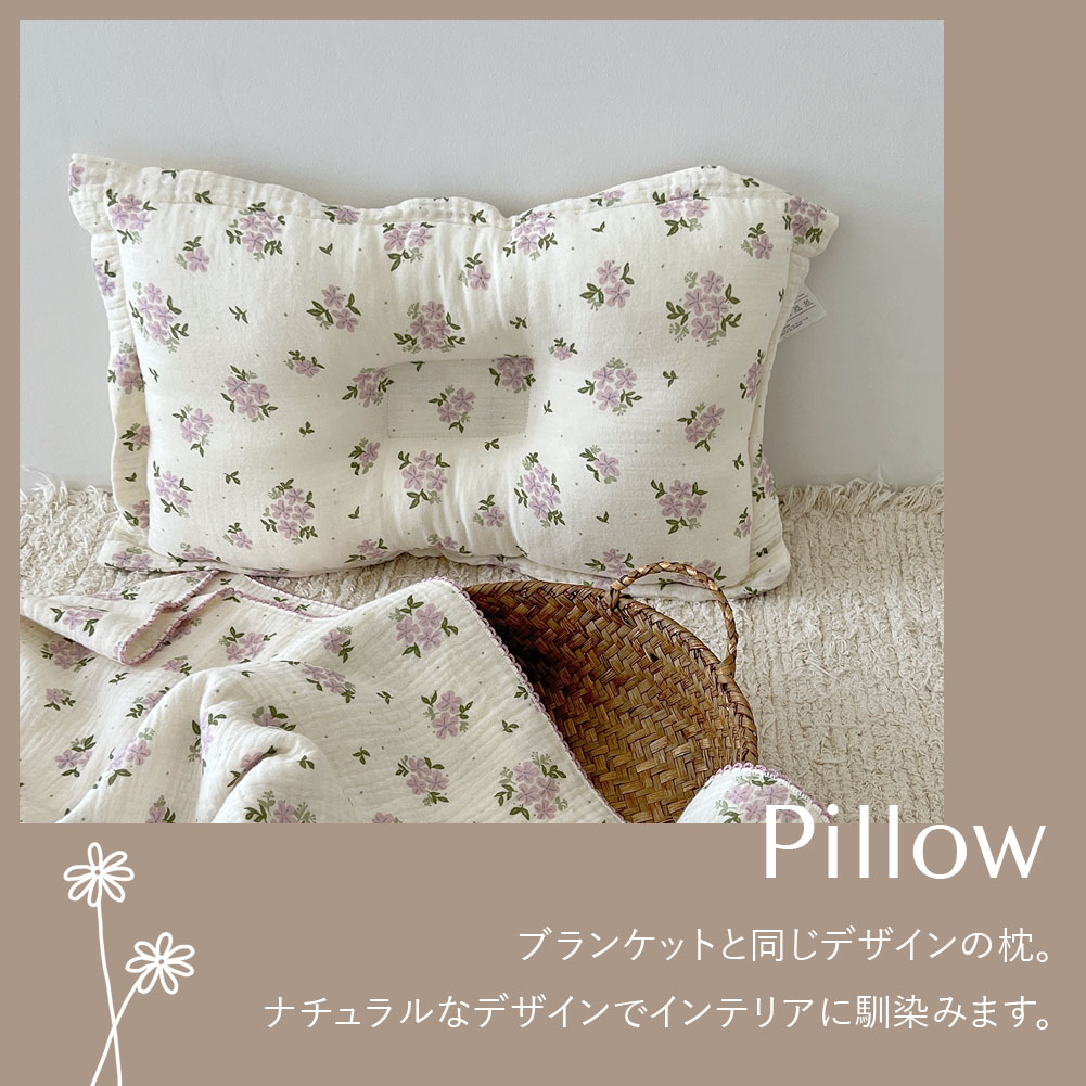| ふわふわ4重ガーゼのブランケットと枕。単品でご購入、セットでのご購入、お好きな方をお選びいただけます。 |