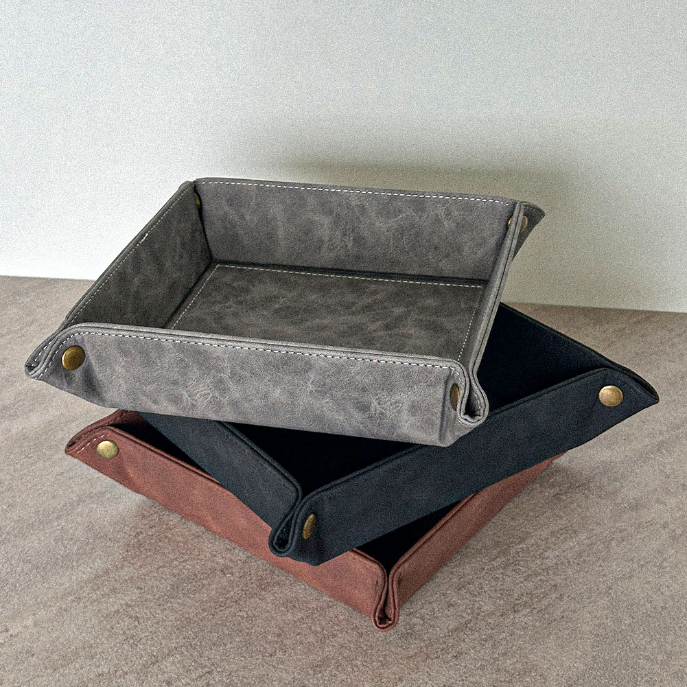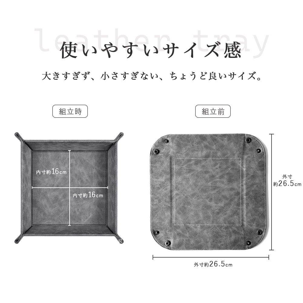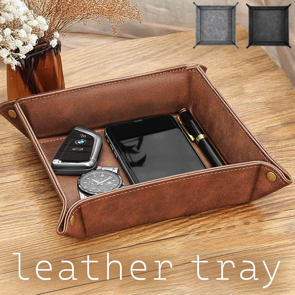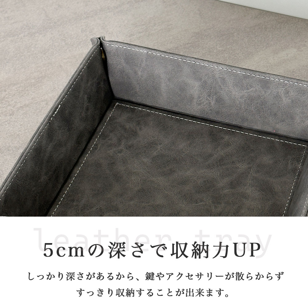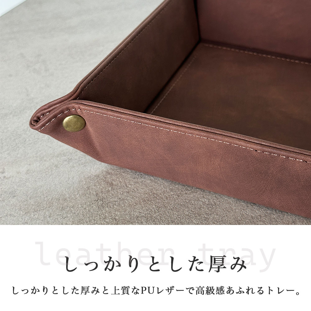 | しっかりとした厚みと上質なPUレザー。高級感あふれるトレーで、ワンランク上の収納を。 |