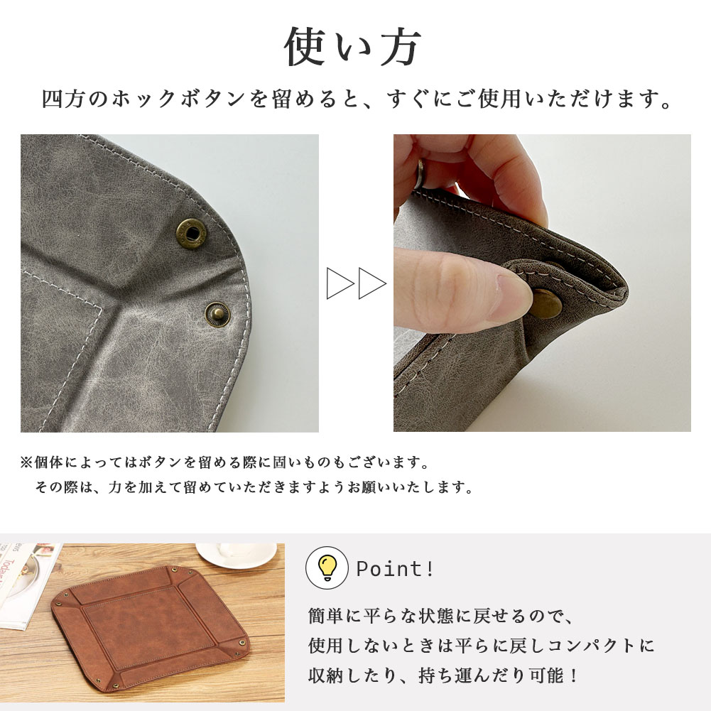 | 商品説明 | おしゃれで実用的なPUレザートレーは、鍵やアクセサリー、小物をスマートに収納できる便利なアイテムです。高級感のある合皮素材を使用し、どんなインテリアにも馴染む洗練されたデザインが魅力。 |
