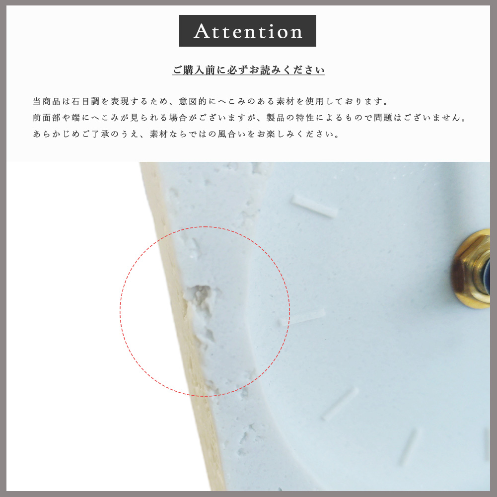 | 注意事項 | ■針が露出しているデザインのため、接触すると変形する場合がございます。取り扱いにご注意ください。 ■電池は付属しておりませんので、お客様ご自身でご準備いただきますようお願い致します。 ■強い直射日光の当たる場所や高温多湿の環境では、色あせ・劣化の原因となりますのでご注意ください。 ■3針(時針 分針 秒針)は取り付けた状態にて出荷いたしますが、輸送時の何かしらの要因により、外れや緩みがある場合がございます。 外れや緩みがある場合はお手数ですが、お客様ご自身で取り付けいただきますようをお願い申し上げます。 取り付け方は時針→分針→秒針の順に取付ください。 ※しっかりと固定されていることを確認ください。固定されていない場合針が本体を擦ることで傷や汚れができる場合がございます。 ■本商品は海外製品、かつ商品のデザイン性を重視した為、非常に細い針を使用しております。針が曲がってしまうことも起きうるデザインの為、少しの歪みは仕様範囲内とさせていただいております。 針が曲がっている場合、3針のいずれかに引っ掛かり上手く回っていない可能性がございますので、それぞれの針に干渉していないかご確認ください。干渉している場合、 指の腹でそっとまっすぐにしていただくことを、お試しいただけますようお願い申し上げます。 ■商品の撮影には最大限注意を払っておりますが、閲覧時のモニター環境によりましては実際の商品と若干違うお色味に映ることもございます。 |