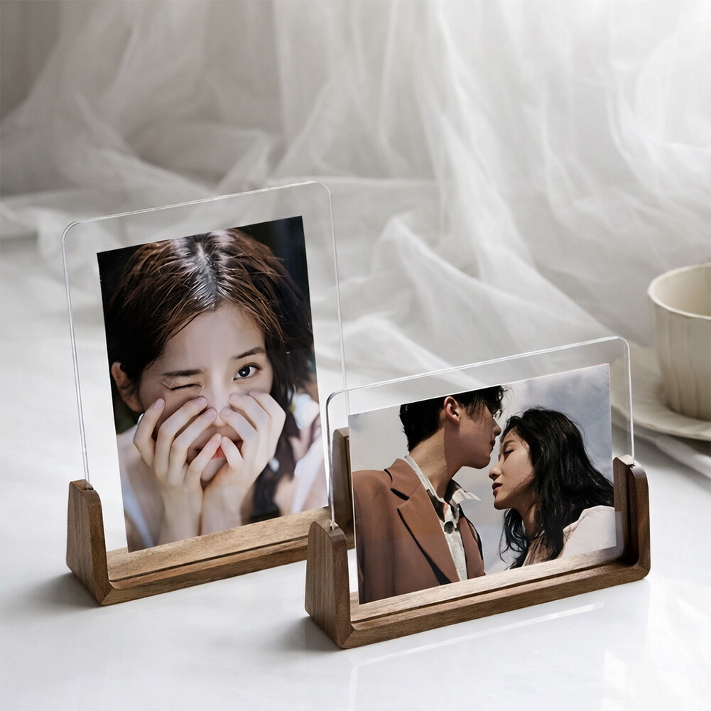 | 自然のぬくもりを楽しめる、ナチュラル&ウォールナットのU型フォトフレーム。 無垢材の美しい木目を活かした、シンプルで洗練されたデザインです。 安定感のあるU字構造と、透明度の高いアクリル板を採用し、写真をすっきり美しく演出。 割れにくく、写真の差し替えも簡単です。 横型・縦型の2種類から選べ、デスクやリビング、玄関まで幅広い空間に自然に馴染みます。 |