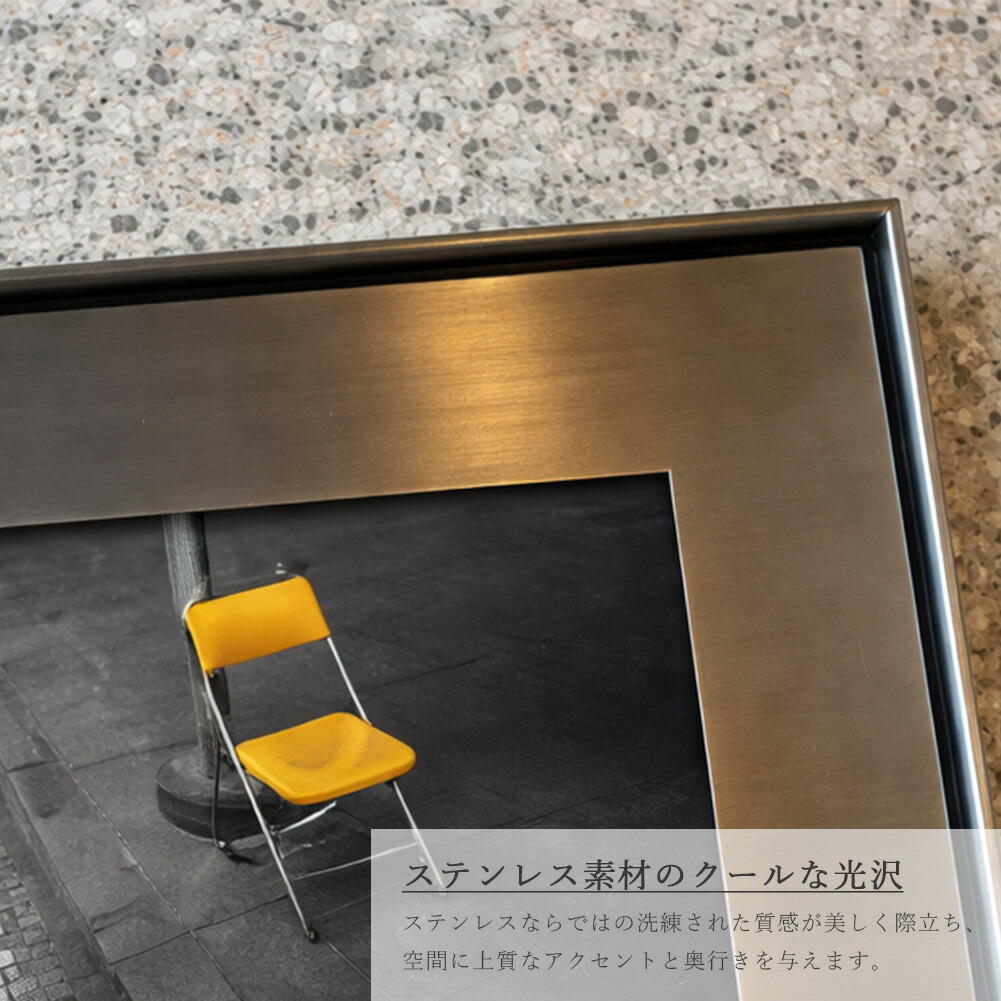| 商品説明 | ステンレス素材ならではのクールな光沢が、壁に洗練された表情を与えるフォトフレームです。 無機質でありながら上質な質感が、写真やアートを引き立て、空間をギャラリーのような雰囲気へと変えてくれます。 リビング・玄関・廊下・店舗ディスプレイなど幅広いシーンで使いやすく、ただ飾るだけで壁面に「視覚的な焦点」を生み出し、インテリア全体の印象をワンランク引き上げます。 |