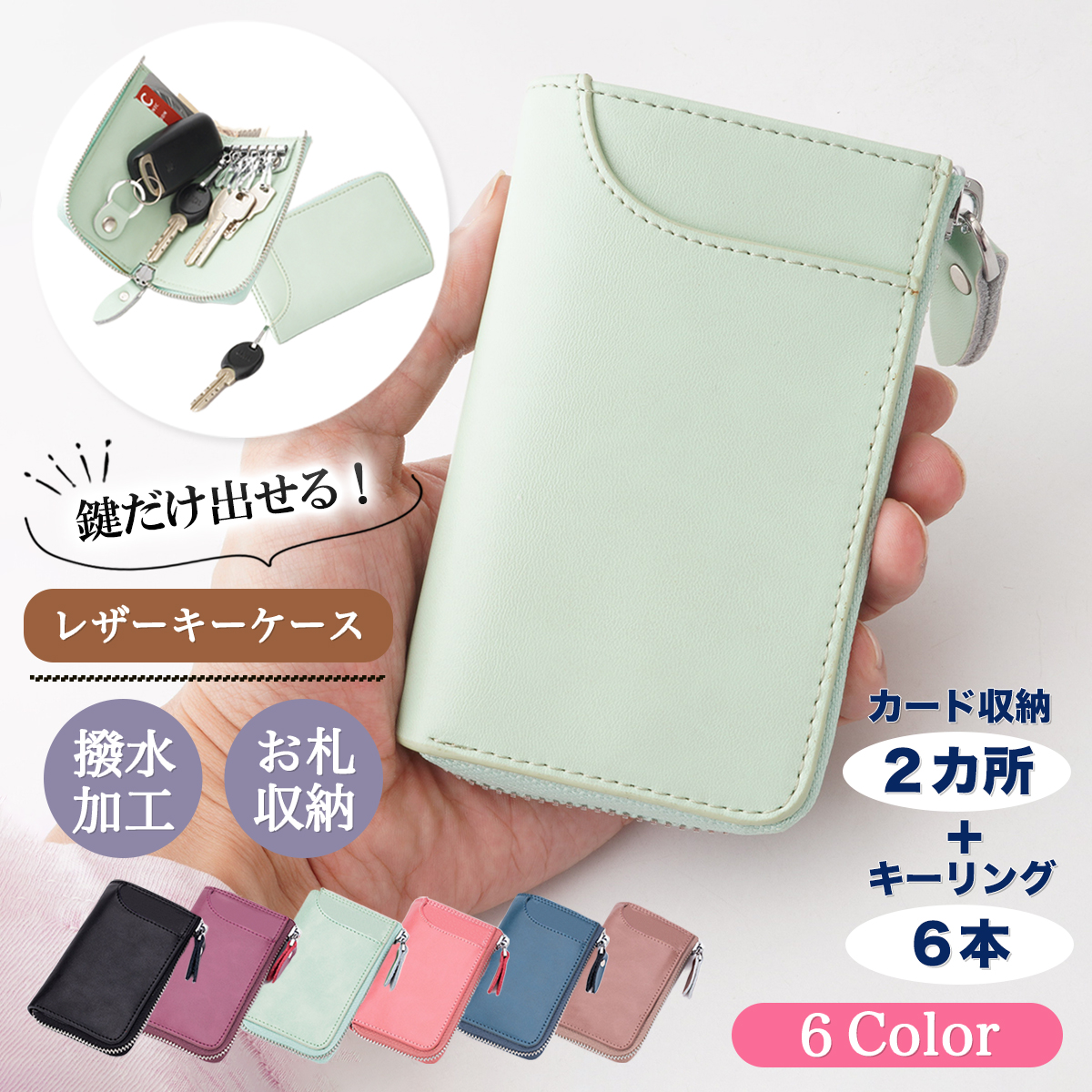 撥水加工を施したこのキーケースは、雨の日も安心の守りを提供します。