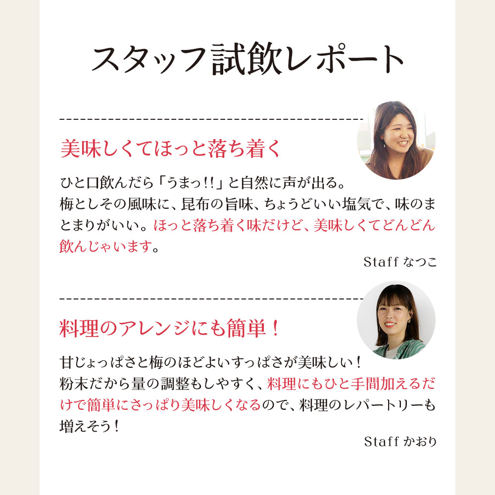 食塩(国内製造)、砂糖、梅肉(梅(紀州産))、梅粉(梅(紀州産))、抹茶、しそ、昆布/調味料(アミノ酸等)、酸味料、香料