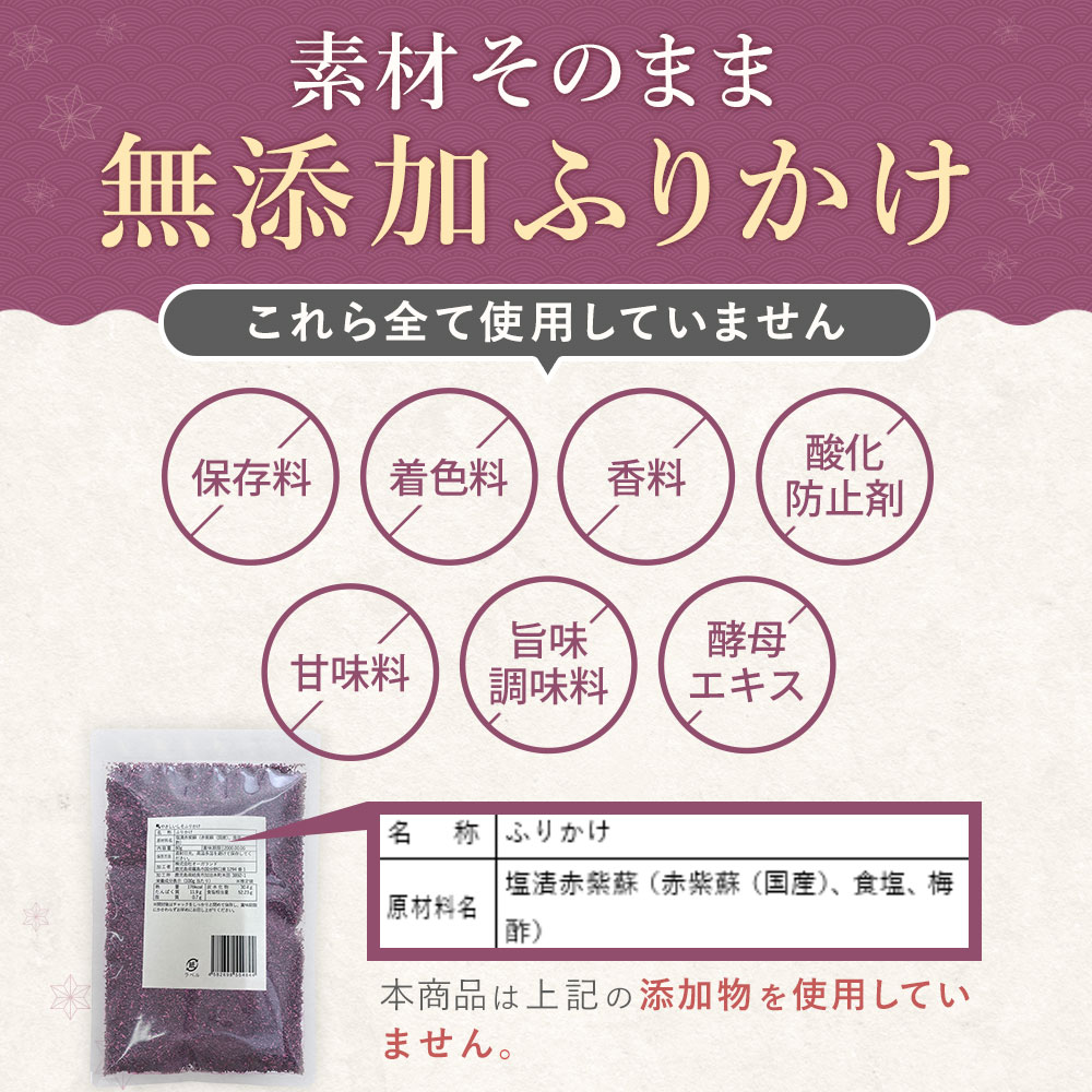 赤しそ ふりかけ 国産 無添加 80g×2袋 赤紫蘇 添加物不使用 無着色 砂糖不使用 香煙 ポイント消化
