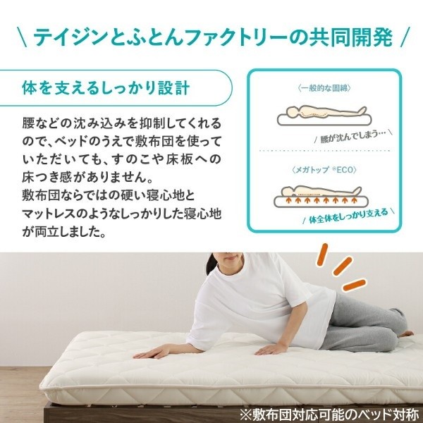 硬めの固綿にテイジンのメガトップECOを使用している敷き布団。