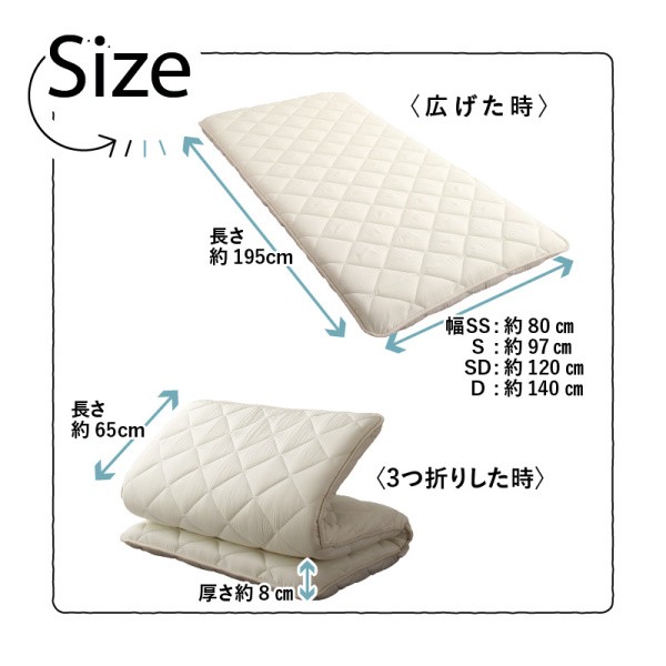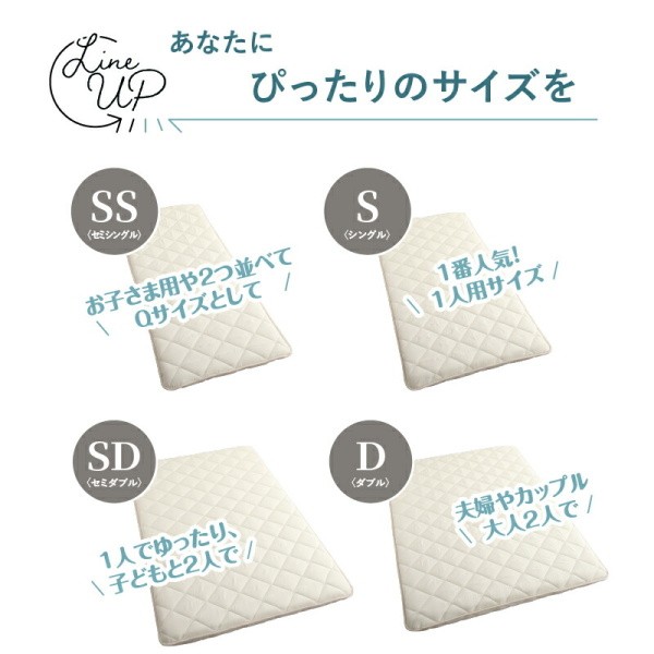 マットレスと重ねられるベッドサイズ!ベッドでも敷布団としても使える。
