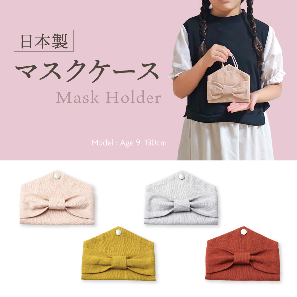 日本製 マスクケース マスクホルダー スナップ ワンタッチ 通園 通学 綿100% リボン くすみカラー お揃いコーデ natural baby