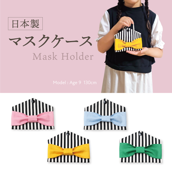 日本製 マスクケース スナップ ワンタッチ 通園 通学 綿100% リボン ストライプ バイカラー お揃いコーデ natural baby