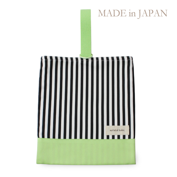 日本製 シューズバッグ アップルグリーン×ストライプ 上履き入れ 靴袋 おしゃれ 人気 シューズケース 子供 入園入学 小学校 保育園 幼稚園 通学 通園