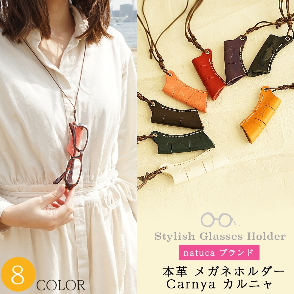 コメント | スタイリッシュなデザインでメンズ・レディースに★ ヌメ革製のネックレス型メガネホルダー かわいい猫デザイン! ネックストラップはお肌にやさしいコットンスムース(綿100%) 金属チェーンが苦手な方にもおすすめ★ |