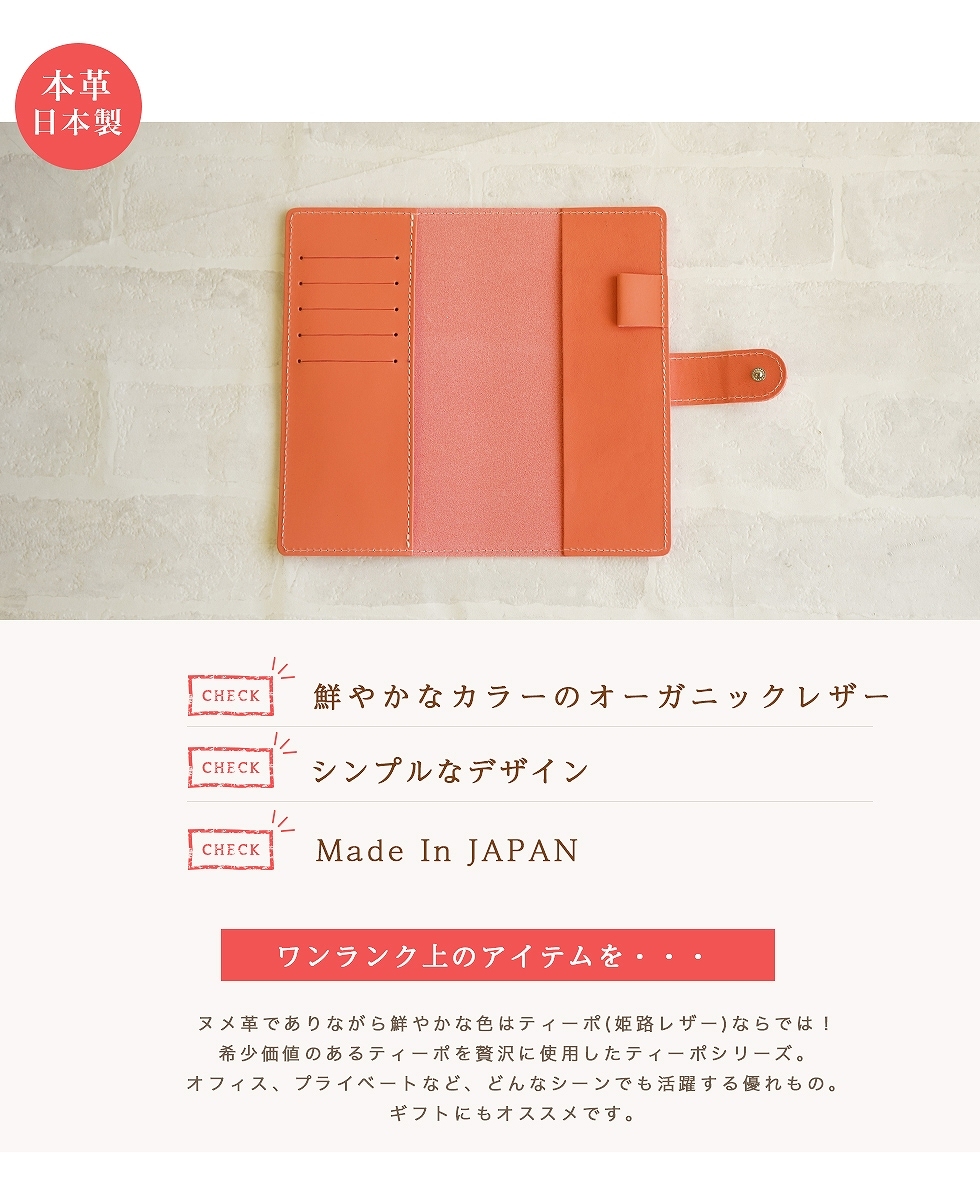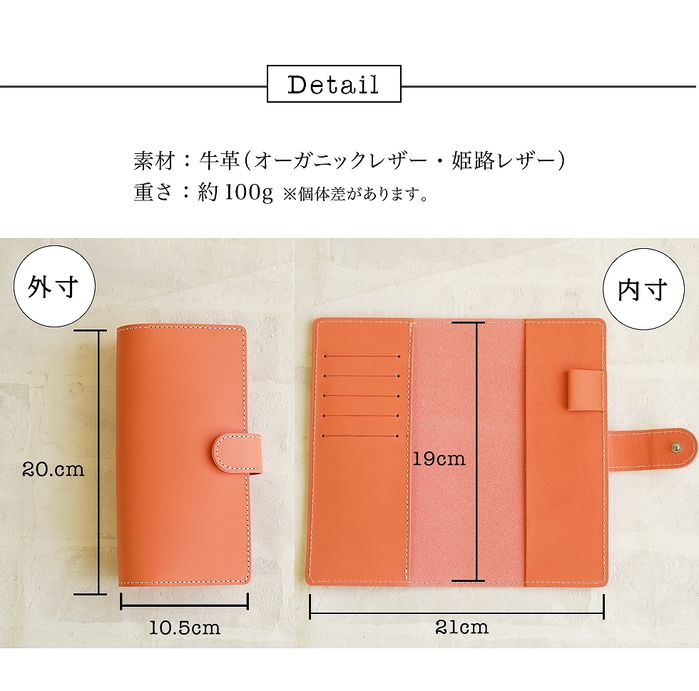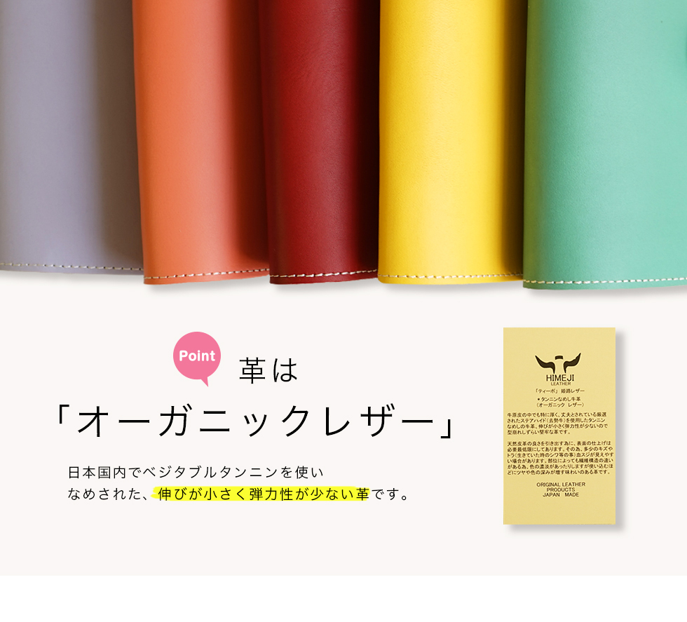 | 素材 | 本体:牛革(オーガニックレザー・姫路レザー)厚さ2.0mm ※裏生地なし 重さ:約100g ※個体差あり |