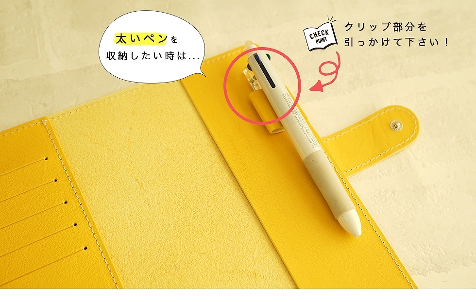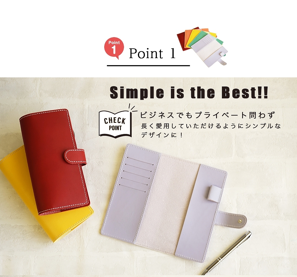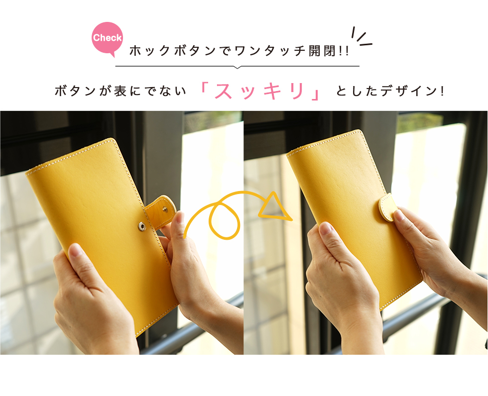 | 機能 | ・内側左にカードポケット5つ ・ペンホルダー1つ ・スナップボタンで開閉 |