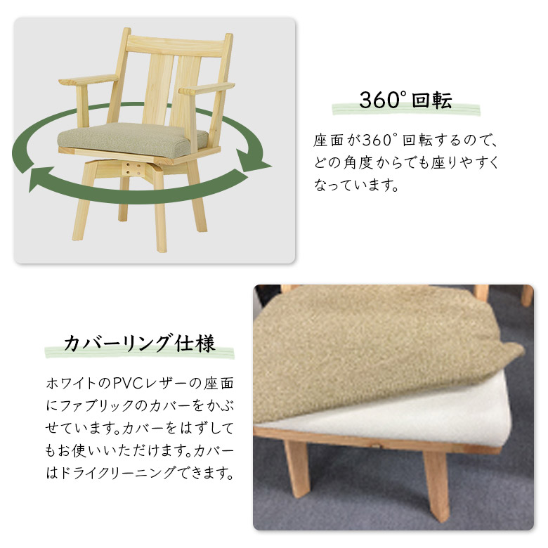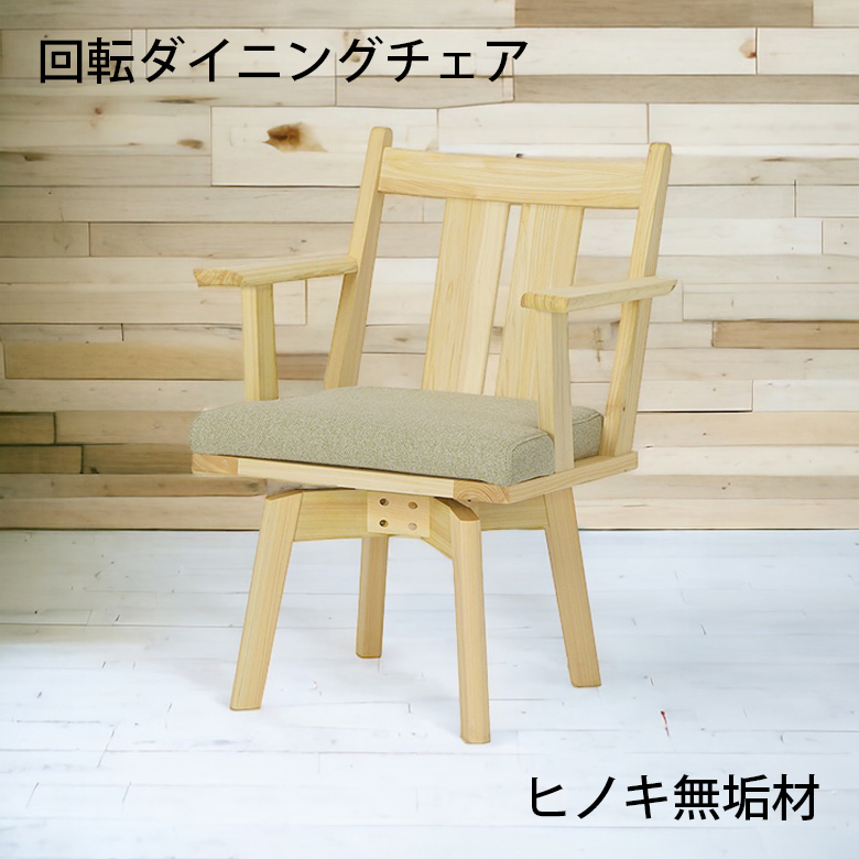 ダイニングチェア 食卓椅子 肘掛け付き 1脚入り 単品 回転式 チェアー イス いす 木製 無垢 天然木 ひのき ヒノキ 檜