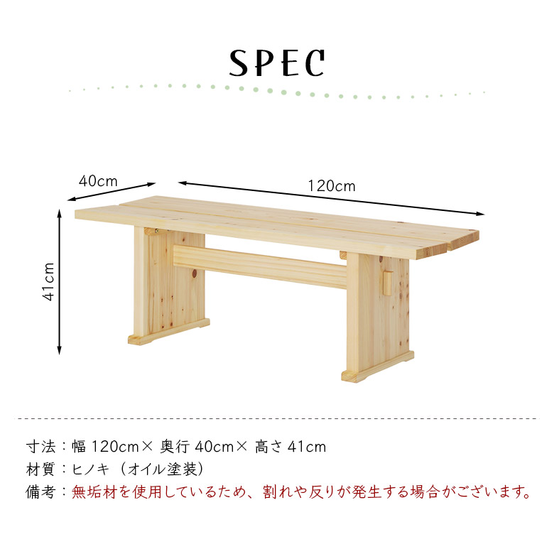 ダイニングベンチ 2人掛け ベンチ 120cm ゆったり 和風 和モダン おしゃれ シンプル 木製 無垢 天然木 オイル塗装