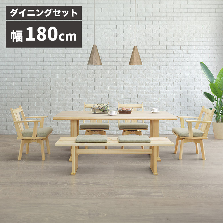ダイニングテーブルセット 180cm 6人掛け 6人用 ダイニングベンチ クッション付き 回転式 ダイニングチェア 4脚セット おしゃれ