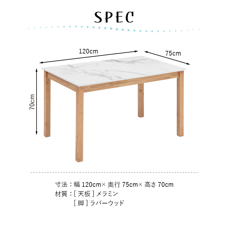 ダイニングテーブル 120cm 長方形 4人掛け メラミン天板 木脚 大理石風 ストーン調 石目調 シンプル モダン 高級感 北欧
