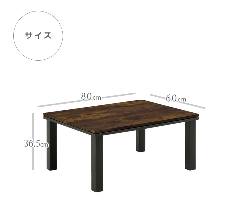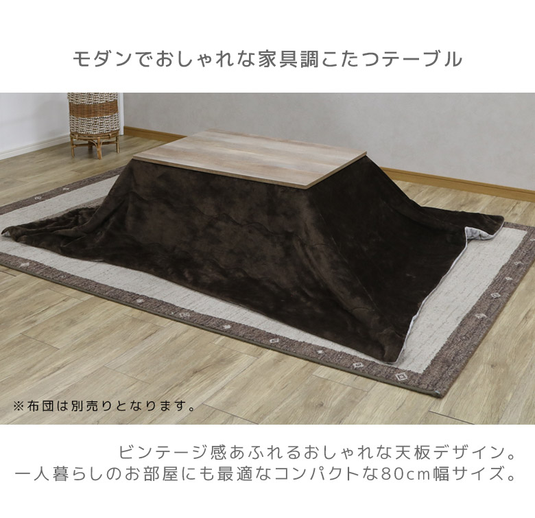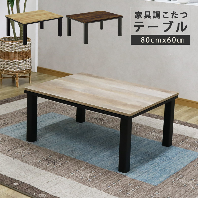 こたつテーブル 長方形 幅80cn ロータイプこたつ コタツ テーブルのみ おしゃれ ビンテージ風 80cm 座卓テーブル