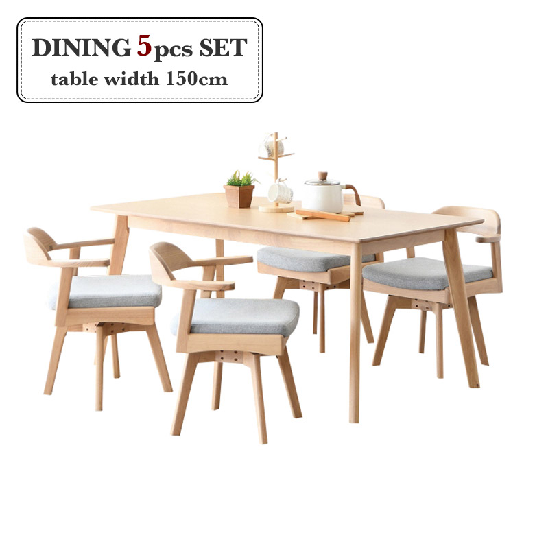 ダイニングテーブルセット 4人掛け 150cm 回転式ダイニングチェア 4脚セット お掃除ロボット対応 北欧 おしゃれ ナチュラル
