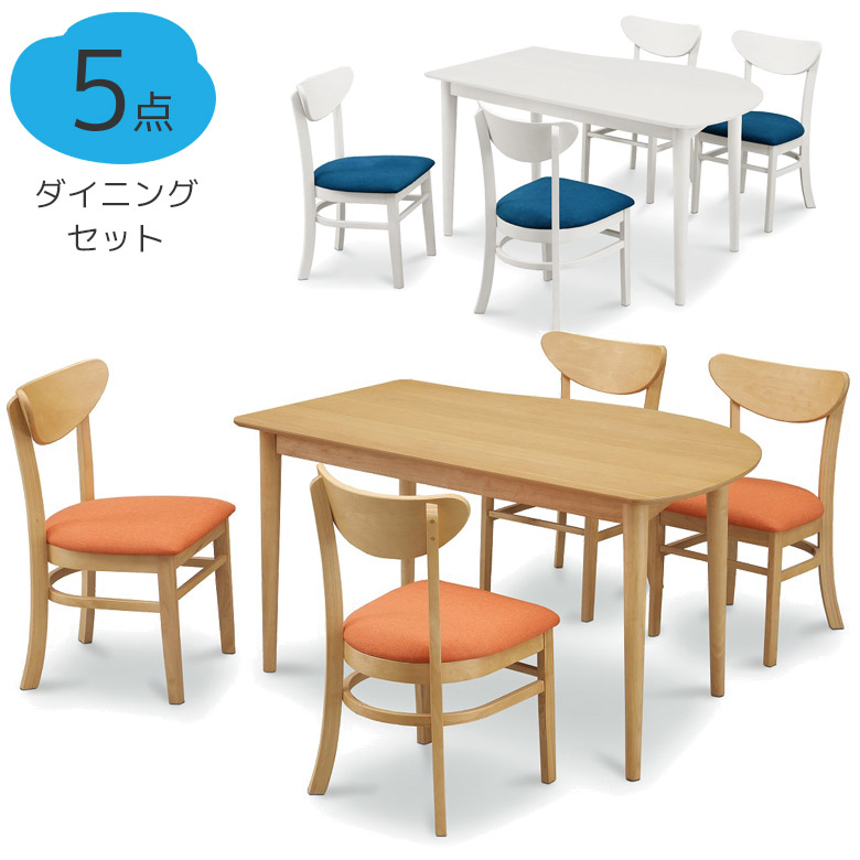 ダイニングテーブルセット 幅130 テーブル 4人掛け ダイニング 5点セット 4人用 天然木 オーク ラバーウッド タモ 丸脚 ファブリック チェア4脚 130cm