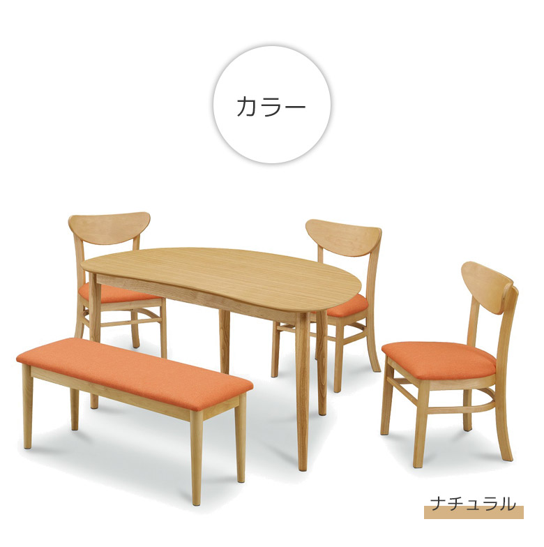 ダイニングセット 4人掛け 5点セット 半円 幅130 テーブル チェア4脚 130cm ファブリック 天然木 ダイニング オーク ラバーウッド タモ 丸脚