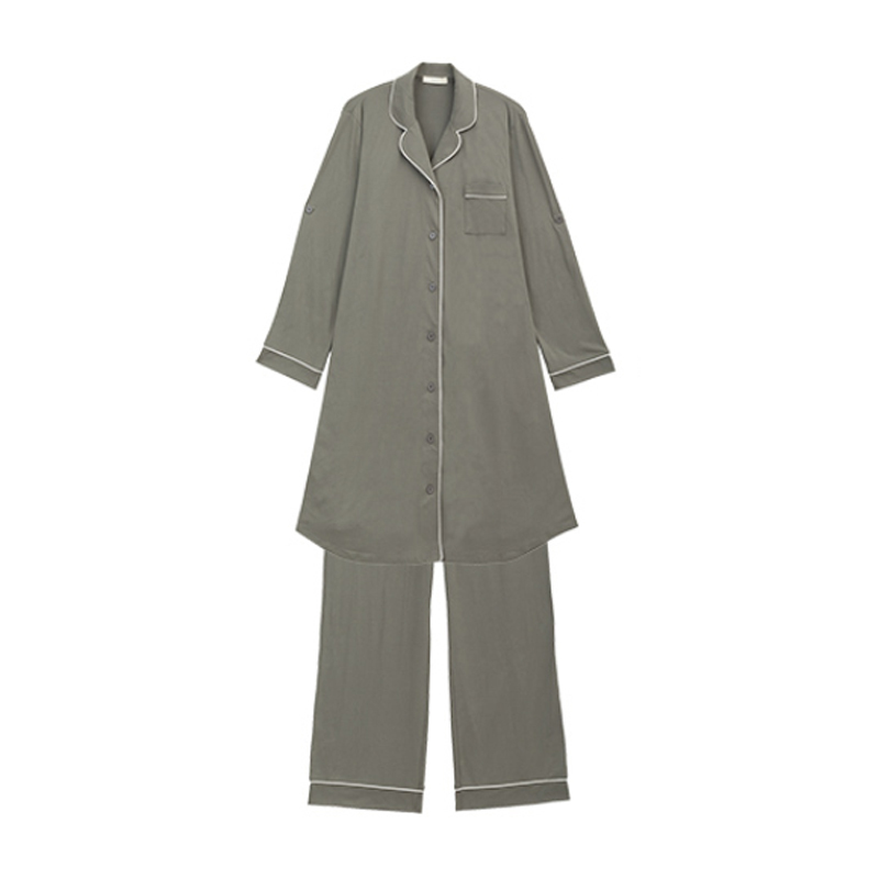 犬印 とろみらくちんパジャマ カーキ マタニティL マタニティ ママ マタニティパジャマ 産前 産後 全開タイプ 授乳 ポケット付き