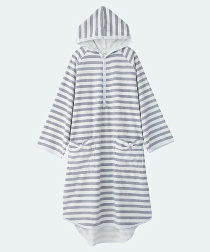 犬印 バスローブチュニック グレーボーダー マタニティ ママ お風呂 プール ジム ワンオペ フード付き 産前 産後 入浴 授乳 吸水性抜群