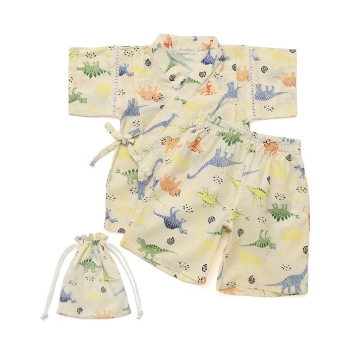 Ampersand(アンパサンド) 総柄甚平 巾着付き セパレート キナリ 90cm 上下セット 甚平 恐竜 子ども 男の子 夏祭り 花火大会 キッズ FOインターナショナル