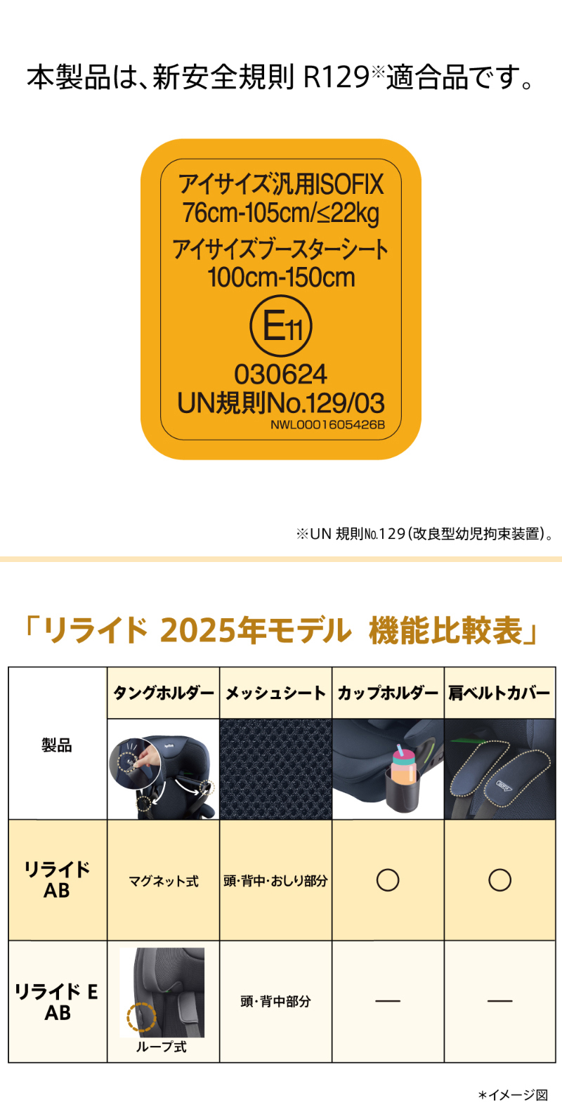 ※1 UN規則No.129(改良型幼児拘束装置)※2 付属品は含みません。※3洗濯方法については、取扱説明書をご確認ください。