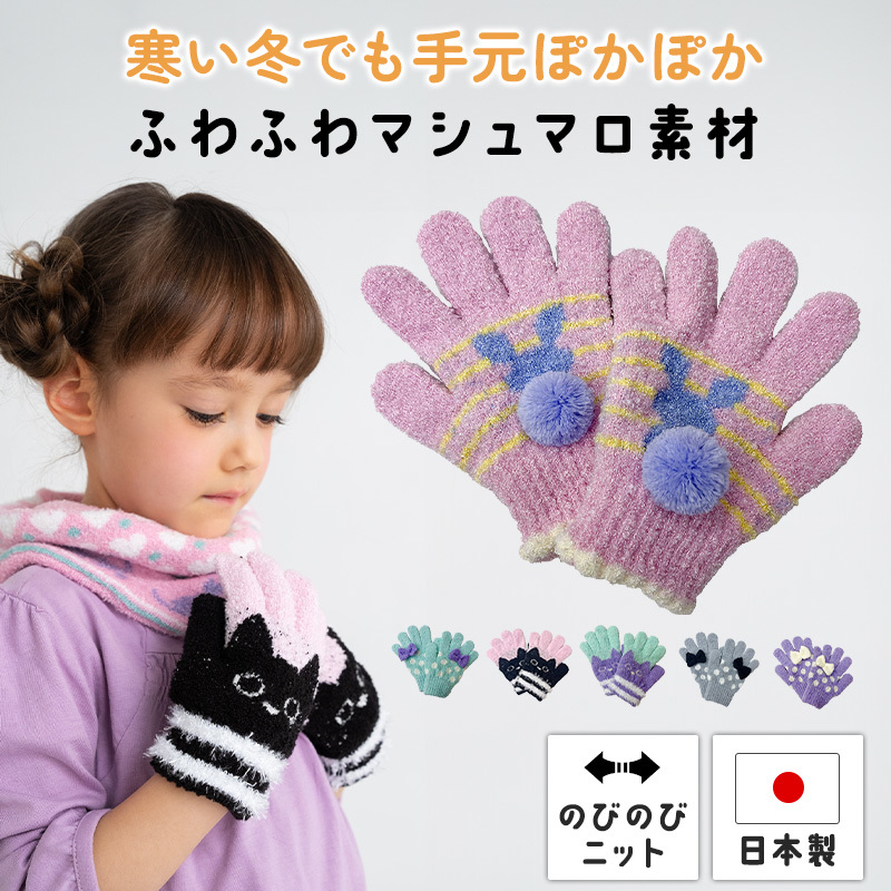 伸縮性の良いマシュマロ素材の手袋は、どんどん成長するキッズにぴったり!