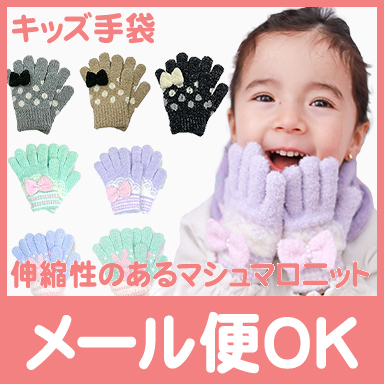 伸縮性のいいマシュマロ素材の手袋はどんどん成長するキッズにぴったり!