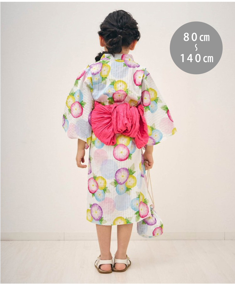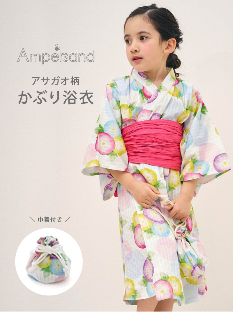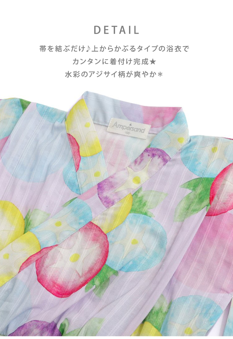 | 帯を結ぶだけ♪上からかぶるタイプの浴衣でカンタンに着付け完成★ 巾着付きでそのまま夏祭りに行けちゃうセットです♪ 水彩のアジサイ柄が爽やか* |