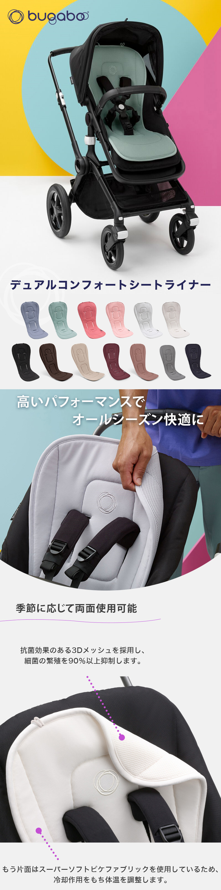 bugaboo バガブー デュアルコンフォート シートライナー ベビーカー アクセサリー オプション シート クッション 速乾 抗菌 赤ちゃん ベビー お出かけ 快適 オールシーズン 清潔 出産祝い 出産準備 正規品 送料無料