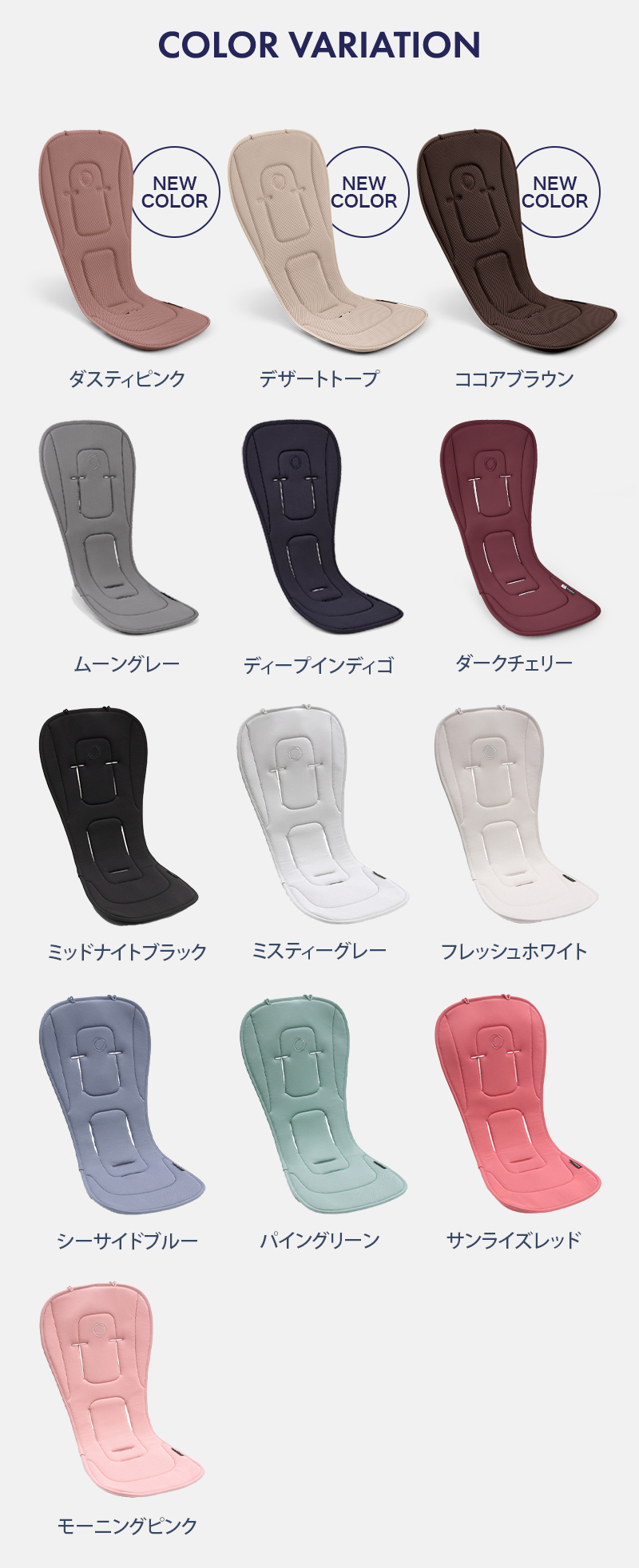 シートライナーはストローラーには欠かせません。新しいシートライナーは柔らかく高品質の素材を使用しているので多くの層を作り出すことができます。