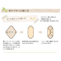 ダイヤ型(普通の日用):《表》ベージュニット(オーガニック綿100%)、《裏》柄生地(ダブルガーゼ綿100%)、《吸水布》パイル・ネル(綿100%)、防水シート(ポリエステル100%)