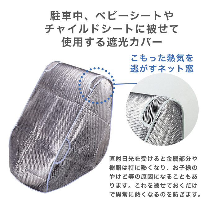 駐車中、ベビーシートやチャイルドシートに被せて使用する遮光カバーです。