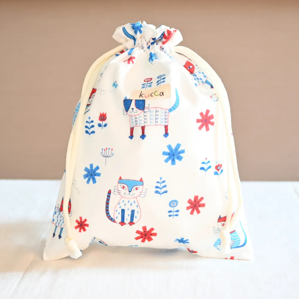 kucca クッカ 防水きんちゃくポーチ(小) ワイルドにゃんズパーティー 防水布 収納袋 旅行ポーチ 日本
