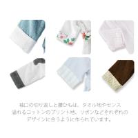 袖口の切り返しと腰ひもは、タオル地やセンス溢れるコットンのプリント地、リボンなどそれぞれのデザインに合うように作られています。