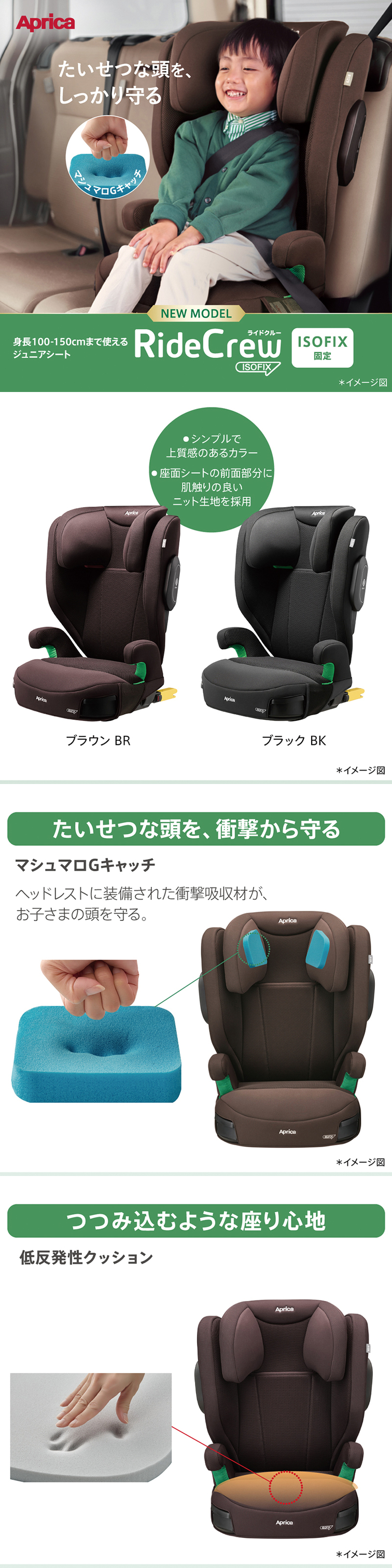 アップリカ aprica isofix チャイルドシートRideCrew ISOFIX あっぷりか アイソフィックス アップリカ ジュニアシート ブースタークッション マシュマロGキャッチ 低反発クッション 座り心地がよい 速乾性 メッシュシート 汗に強い 安全規則 R129適合 ドア側の 衝撃から守る サイドシールド フィット 深いヘッド ボディサポート 成長に合わせて カンタン調整 10段階ヘッドサポート 背もたれ 角度調整 肩ベルトガイド 収納 カップホルダー シートカバー 洗濯可能 清潔 正規品 新品 チャイルド キッズ ドライブ 簡単 カンタン取り付け メーカー保証 3歳半から 12歳まで 長く使える 100cm から 150cmまで ハイバックジュニアシート ブースターシート 安心 安全 事故 怪我防止 車 交通事故 もしものために お出かけ 帰省 旅行 ロングユース 子供 子ども こども キッズ 男の子 女の子 ユニセックス ジュニア ナチュラルベビー ナチュベビ なちゅべび 送料無料