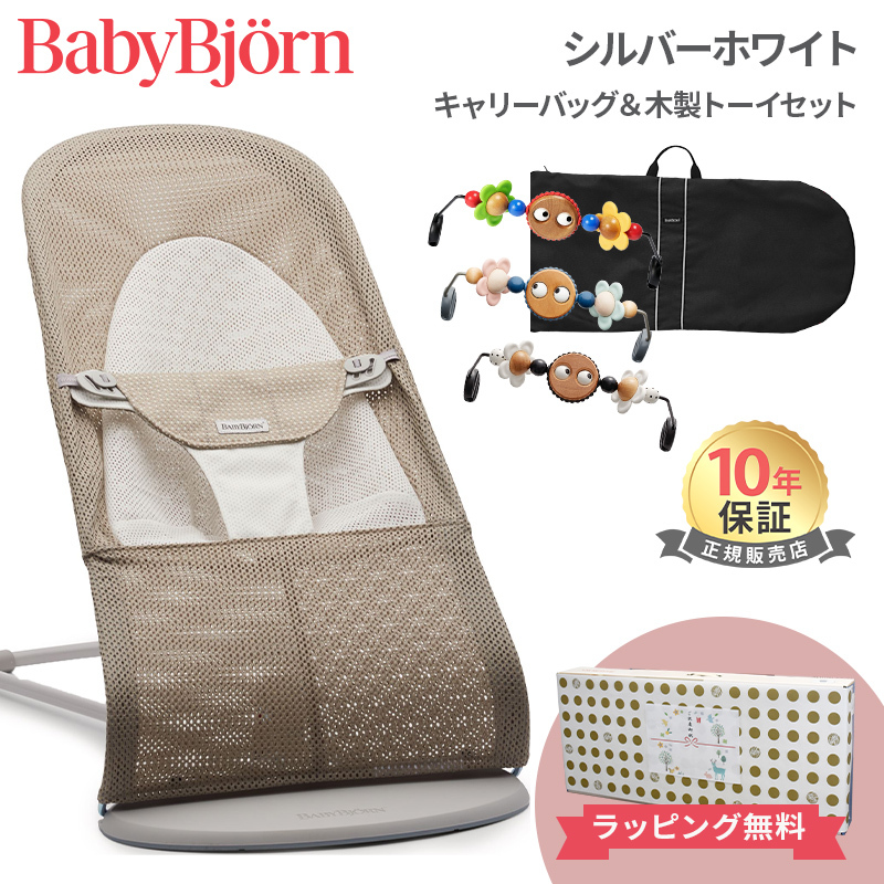 ベビービョルン バウンサー メッシュ バランス ソフト エアー シルバーホワイト キャリーバッグ & 木製トーイセット バランス ソフト Air メッシュ バウンサー Baby Bjorn 出産祝い 新生児 赤ちゃん ベビー 日本正規品 10年保証 送料無料