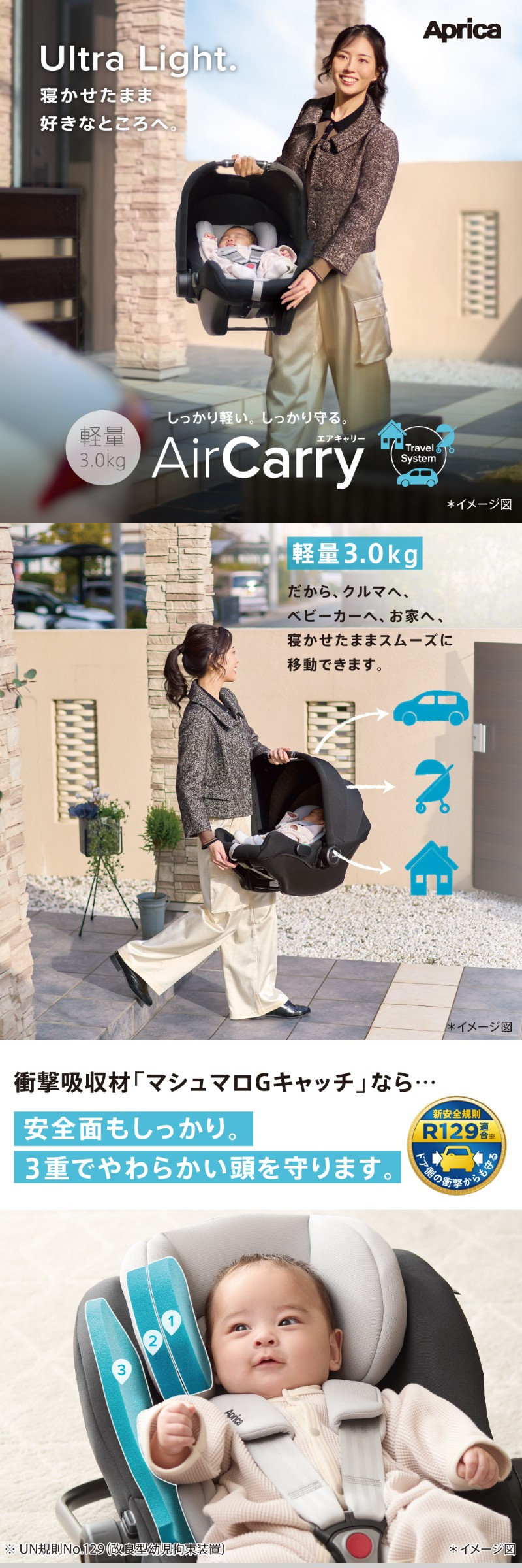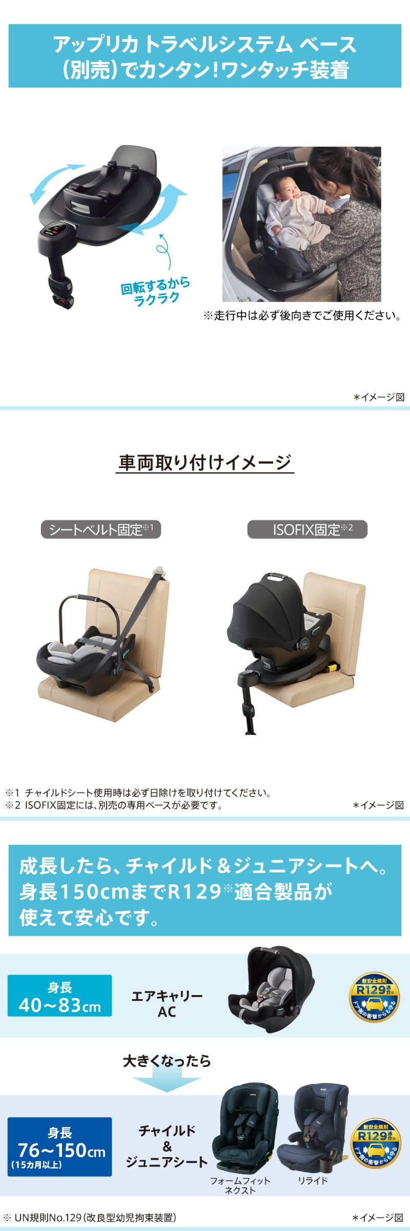 ■備考:UN規則(UN-R129/03)適合※ 別売りのアップリカトラベルシステム ベース使用で、ISOFIX固定も可能