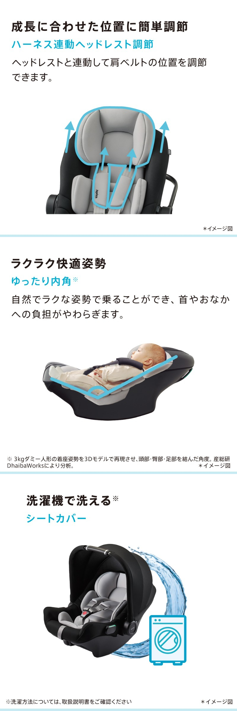 | UN規則(UN-R129/03)適合※ 別売りのアップリカトラベルシステム ベース使用で、ISOFIX固定も可能 |