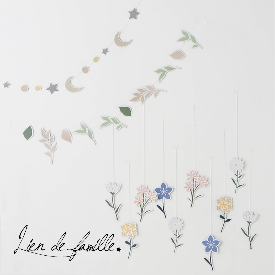 モチーフを1本に繋げるでもよし、1個1個吊るすでもよしなので、お好きなパターンで取り付けできます。