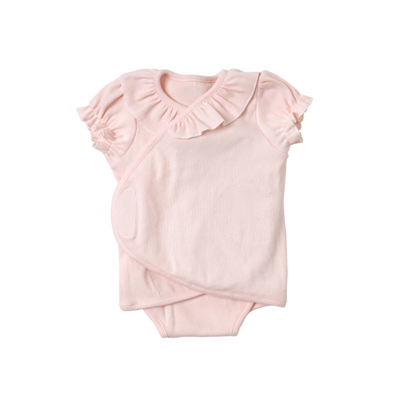 10mois ディモワ PATTO SATTO OMEKASHI 半袖襟フリル ピンク 50-60cm 肌着 インナー テープ ベビー 赤ちゃん ロンパース 出産準備 前開き
