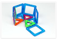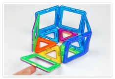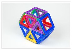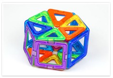 | 立体の展開図だけではなく、色々な角度から見れるのもマグフォーマーのよさです。 | ピースをはずして見ても形が崩れないので探究心をくすぐります。 | さっき作った図形を途中まで崩し、ピースを1つ増やせばどうなるか?という作っていたものを途中まで戻せるという作業も簡単にできます。 |